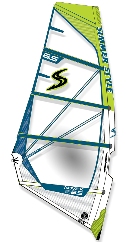 The Novex is the best choice for novice sailors who wants to bring their windsurfing to an experts level. Its designed specifally to make it as easy as possible to learn all the fundamentals of windsurfing. The Novex is light weight for easy up-hauling and water starting. The wide sleeve provides superior front end drive which drags you up into planing without needing to work for it. Getting into the footstraps, learning to gybe or tack is all easy with the Novex. Its a price point product, but is still features all the trademark Simmer qualtiy features, such as a durable construction, a kevlar stretch control tendon and a durable dacron top. The Novex rigs on one mast, one boom and one extension for most sizes. Simplified rigging and ease use makes the Novex the perfect choice the entry level windsurfer who wants to get fired up on windsurfing with the Novex in your hands.