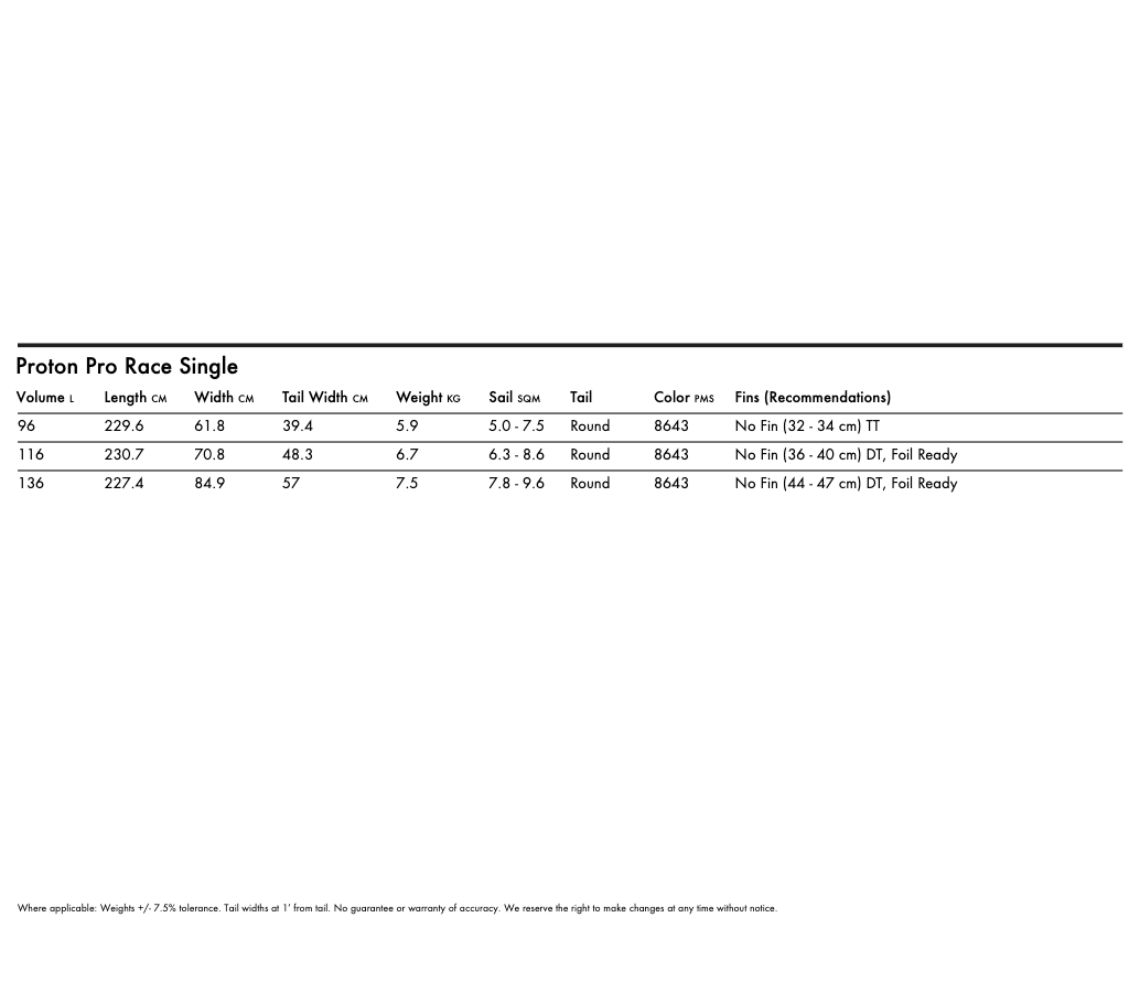 Available with a Tuttle finbox (96) or Deep Tuttle Foil ready finbox (116, 136).